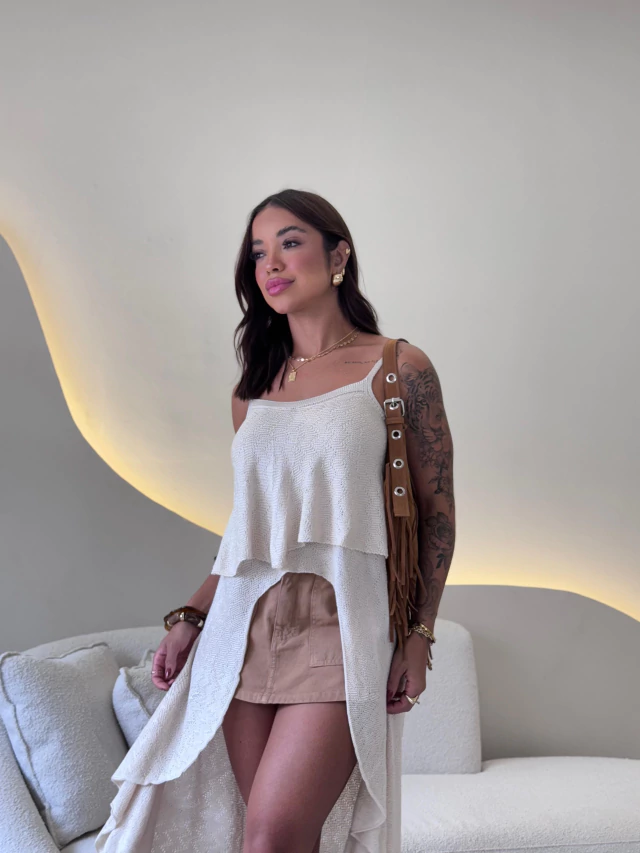 Descrição: A Bata Tricô Liv é a adição perfeita para quem busca um toque de leveza e estilo no guarda-roupa. Confeccionada em tecido trico, esta bata possui um caimento incrível, ideal para diversas ocasiões. Com alças sem regulação, ela proporciona conforto e praticidade, permitindo liberdade de movimento durante todo o dia.