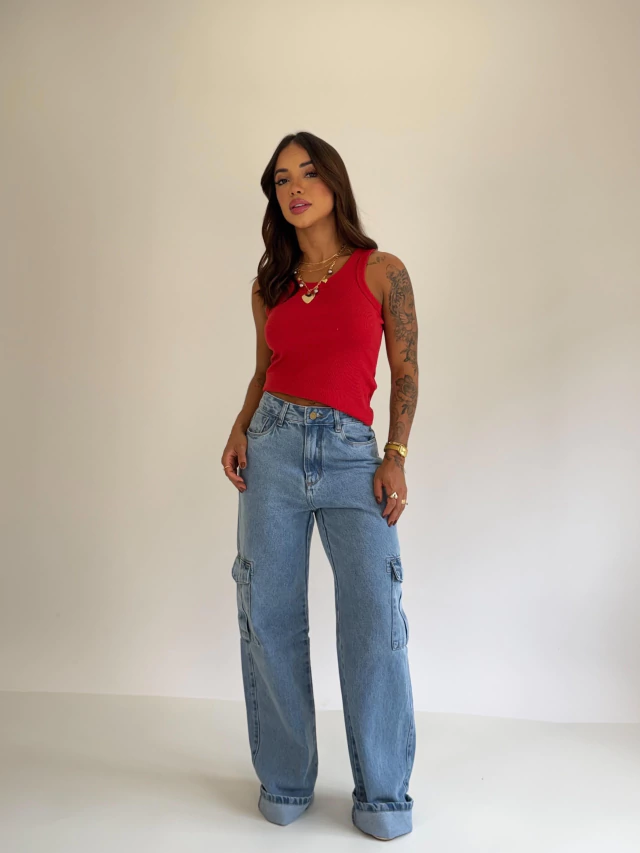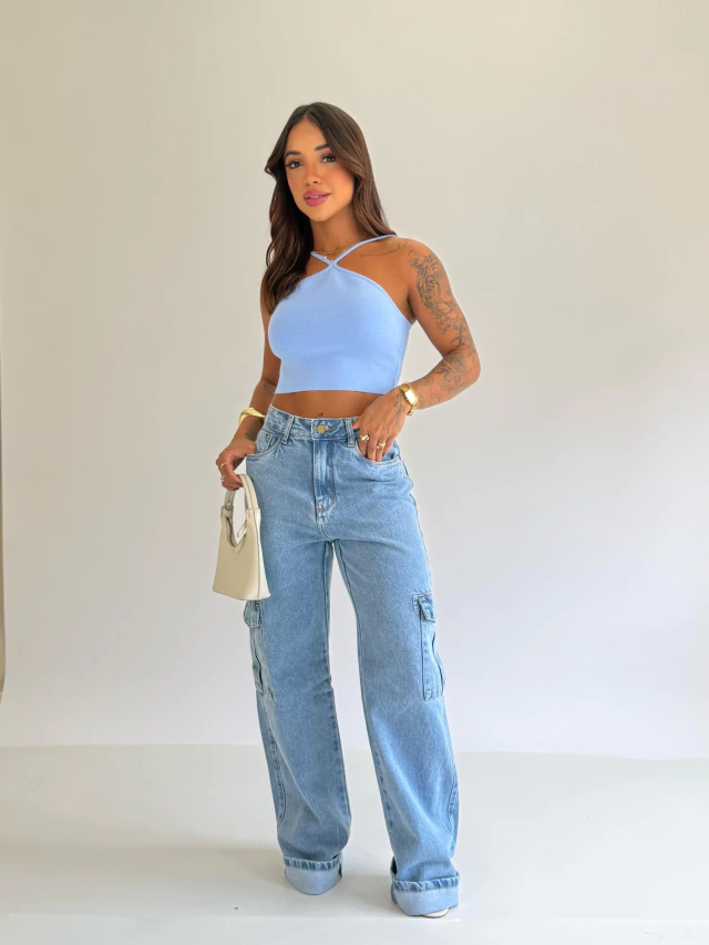 A Calça Jeans Wide Leg com modelagem cargo é a peça-chave que faltava no seu guarda-roupa. Confeccionada em jeans de lavagem intermediária, ela combina o conforto do tecido com o visual moderno e despojado do corte wide leg, perfeito para quem busca estilo e liberdade de movimento.
