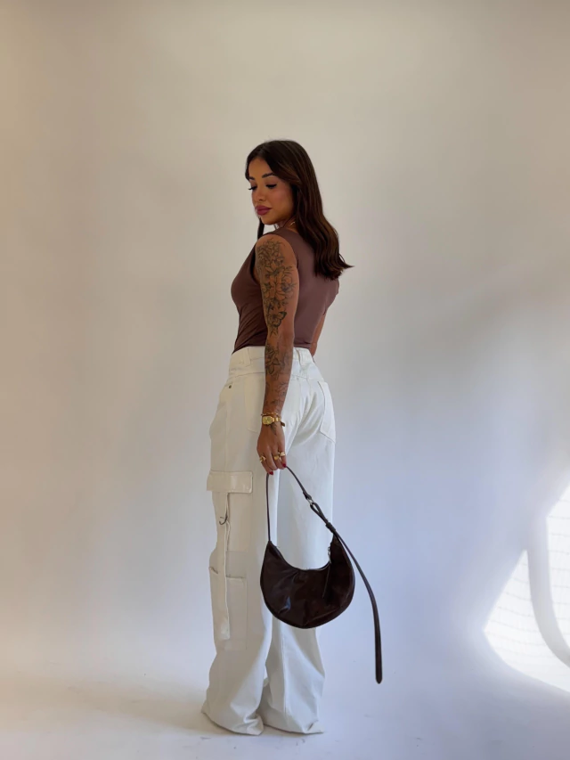 Um dos grandes diferenciais desta peça são os bolsos utilitários funcionais, que além de um charme extra, oferecem praticidade para carregar pequenos objetos com segurança. Os bolsos destacados valorizam o design da calça e tornam o visual contemporâneo e despojado.