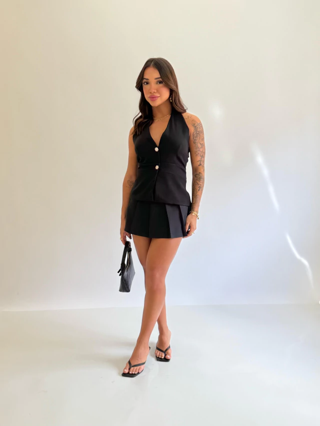 Renove seu guarda-roupa com essa peça que une elegância e praticidade. Aposte no Colete Alfaiataria Anya e esteja pronta para qualquer ocasião com muito requinte!