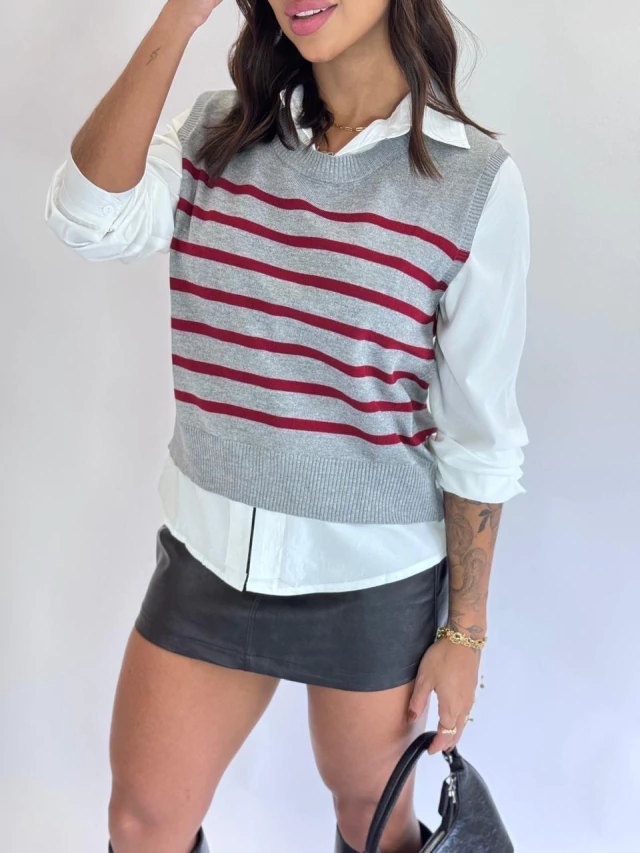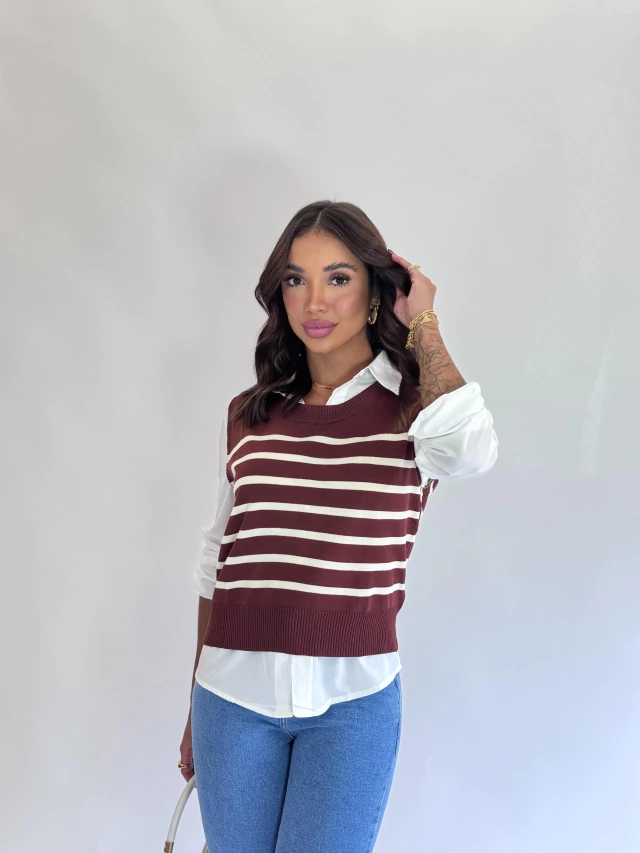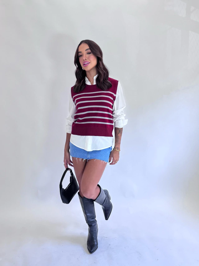 Descrição: Descubra a exclusividade do Colete Lovani, uma peça que une tradição e estilo com suas tramas feitas à mão, garantindo um acabamento único e sofisticado. Seu design com gola U e elegantes listas confere um toque contemporâneo e versátil, perfeito para valorizar qualquer look.
