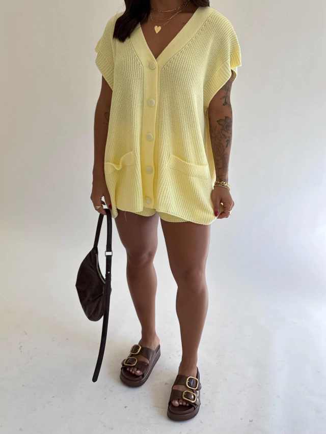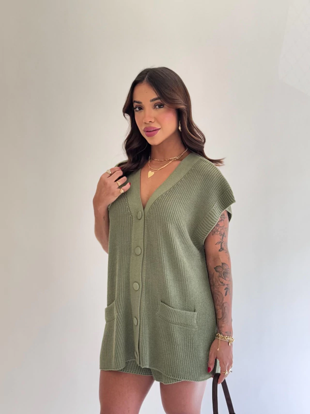 Descrição: O Conjunto Tricô Camila é a escolha perfeita para quem busca estilo e conforto. Confeccionado em tricô macio, esse conjunto é ideal para compor looks modernos e elegantes. O colete adiciona um toque sofisticado, enquanto os shorts garantem liberdade de movimento e versatilidade.