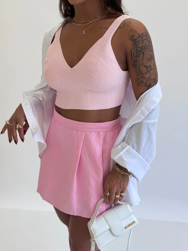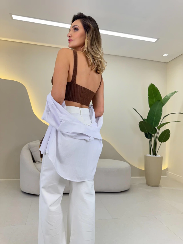Seu design com alças grossas proporciona suporte e conforto, enquanto o decote nos seios realça a feminilidade com elegância e sutileza. Versátil, o Cropped Tricô Malka combina facilmente com jeans, saias e calças, garantindo produções que vão do casual ao sofisticado em segundos.