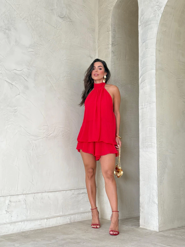 Ideal para dias quentes ou eventos casuais, o Macaquinho Chiffon Agnes combina facilmente com acessórios e calçados variados, do salto às sandálias rasteiras.
