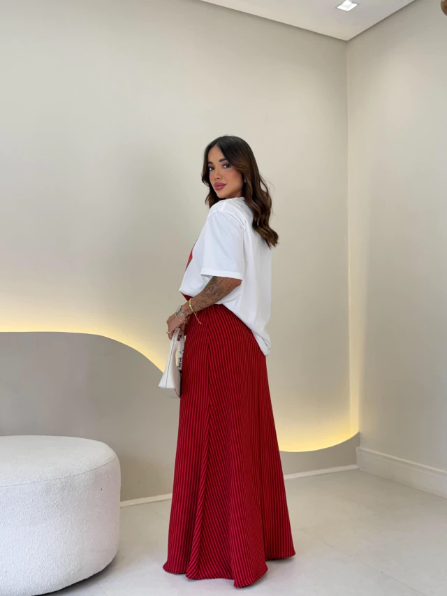 Saia Crepe Tomato: Elegância e Versatilidade em Listras